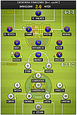 ここまでは私が予想するインテル側の動きになるのですが、じゃあ実際バルサ(ペップ監督)がどういう采配をとったのか?というとイニエスタはモウリーニョ監督の予想通り右WG・・・じゃなくより中央に絞った(というかフリーなポジション)で縦横無尽に動いています。またD.アウベスもここ最近の試合では見られなかった縦のスペースを有効に使った動きが顕著に見られました。これはもしかしたらメッシが欠場した恩恵かもしれないと勝手に想像したりもするのですが、最近の彼(メッシが)は不調?により縦への渋滞の原因になっているような気がしないでもありませんし・・・。