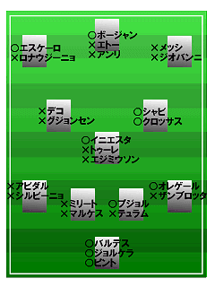 おー!おー!メッシ→シャビへ渡り・・・ゴオオオオオオール!2戦連続ですよぉー!!。よくやったとシャビ!!ありがとう・・・笑。(しかし、審判に救われた感がやはり残る感じ)。でも逆転できない!どうしても勝ちたかった試合なのに・・・泣。う~んガウショはあと少しですね~。多少復調した感じでしょうか?(少し痩せた感じですし)。メッシももう少し守備してくれればね~。(アンリは筋肉系痛めた感じが・・・大丈夫でしょうか?)こりゃ、来週復帰するエトーさんに期待するしかないですね(間違っても決勝で燃え尽きて帰って来るなよぉ~)。あ!あとバジャドリード・・・昇格組の意地みせてくれー!!