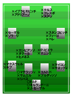 ということで、購入見送りの方のためにこちらをご用意しておきます・・・。といっても今回の選定はACミランが基本になっていますのでおおよそ検討がつくとは思いますけどね・・・。それにしても気になったのがコスタクルタの配置・・・。苦肉の策で右ラテラルにしたとか書いてあったような(間違っていたらすいません・・・汗)気がしましたが、それなら単純にプジョル右にずらしちゃえば・・・と思ってしまいました。明らかにそちらのほうが適正あるのに・・・笑。
