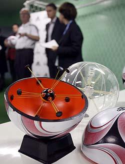 小型チップ入りのサッカーボールの内部構造が報道関係者に公開・・・。