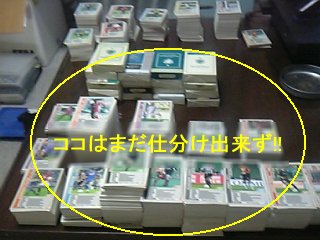 ↑ココまでは多分AM1:00頃までの話だと思いますが、以下は今(AM4:00頃)の状況です…汗!!。今まではプスチックの長いボックス(100均SHOPで売ってるやつ)にSERIE A01-02のカードをクラブ毎に入れていましたが、本格的にファイリングしようと思い190番位まで終わりましたが…疲れました!!。こんなの深夜しか出来ないんですが、とにかくねー目が痛いッ!!。ですが、提供(旧カードはトレードですね♪)もしていかなくちゃいけないので…ふうー頑張りますよ…汗汗汗汗!!。あっ!!ファイルに入らなくなった!!また明日買いに行かなくちゃいけない…トホホ。