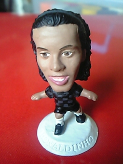 今回リペイントしたのは現行のチームの最重要選手であるロナウジーニョ!!。出来の方は「?」ですが愛着のある選手ですので思わず力が入りました…爆。それにしてもこのユニフォームはSERIE A2001-2002の頃から一度も変えていません!!(何千試合も同じですよ…汗)。それにしてもこの濃灰と黒のユニフォームは面倒臭いッ!!。まず下地を白で塗った後、濃灰を塗り、黒で格子柄に塗り、最後に濃灰で微修正…。バルセロナのユニフォームで最近手抜きしていたので本当に疲れました…汗!!。