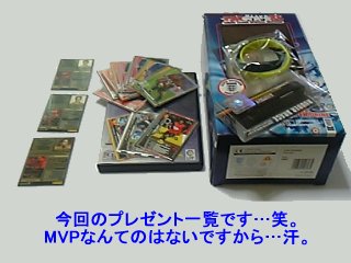 先日発表しましたプレゼントですが月末に発送しようと思っています!!梱包とか結構手間がかかりますので次の休みにまとめてしたいと思います♪あと、次のプレゼント企画に協力していただける方がいましたらどんなカードでも結構ですので協力お願いします(協力出来る方がいましたらメール下さいね。追って送付先を返信します…笑)