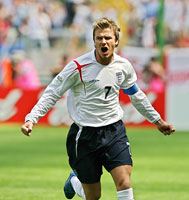 イングランド代表主将ベッカムの放ったFKから生まれたオウンゴール!!