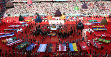 やってきました!!2006FIFAワールドカップがついに開幕です…笑。全世界で延べ300億人が観戦すると言われているこの世紀のイベントですがいきなり出ましたよ!!歴代優勝国の名選手約160人が一同に入場行進!!もうこれだけでも録画もんです♪